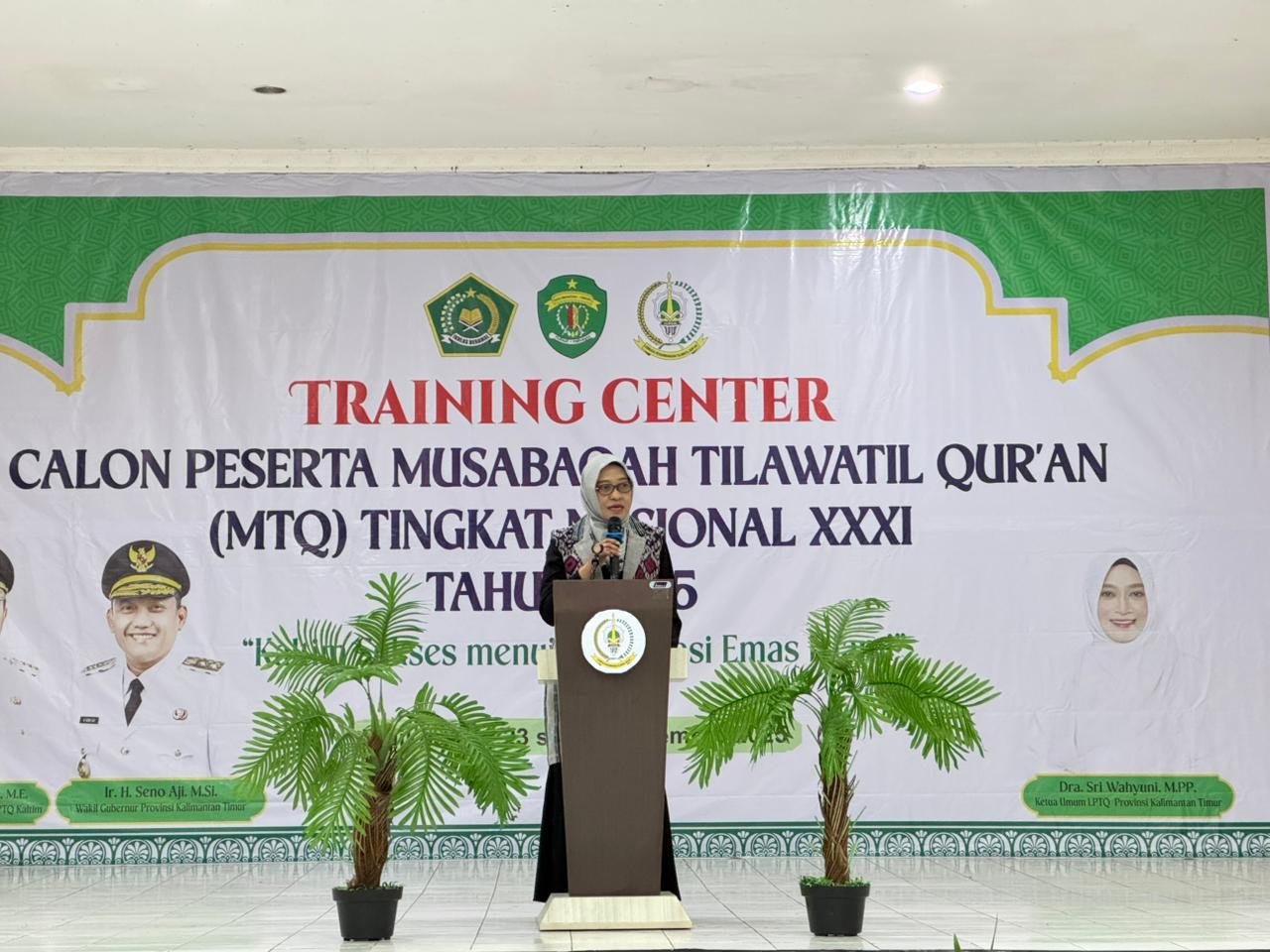 Ketua LPTQ Kaltim yang juga Sekretaris Daerah Provinsi Kaltim, Sri Wahyuni, membuka kegiatan secara resmi melalui pengalungan tanda peserta.