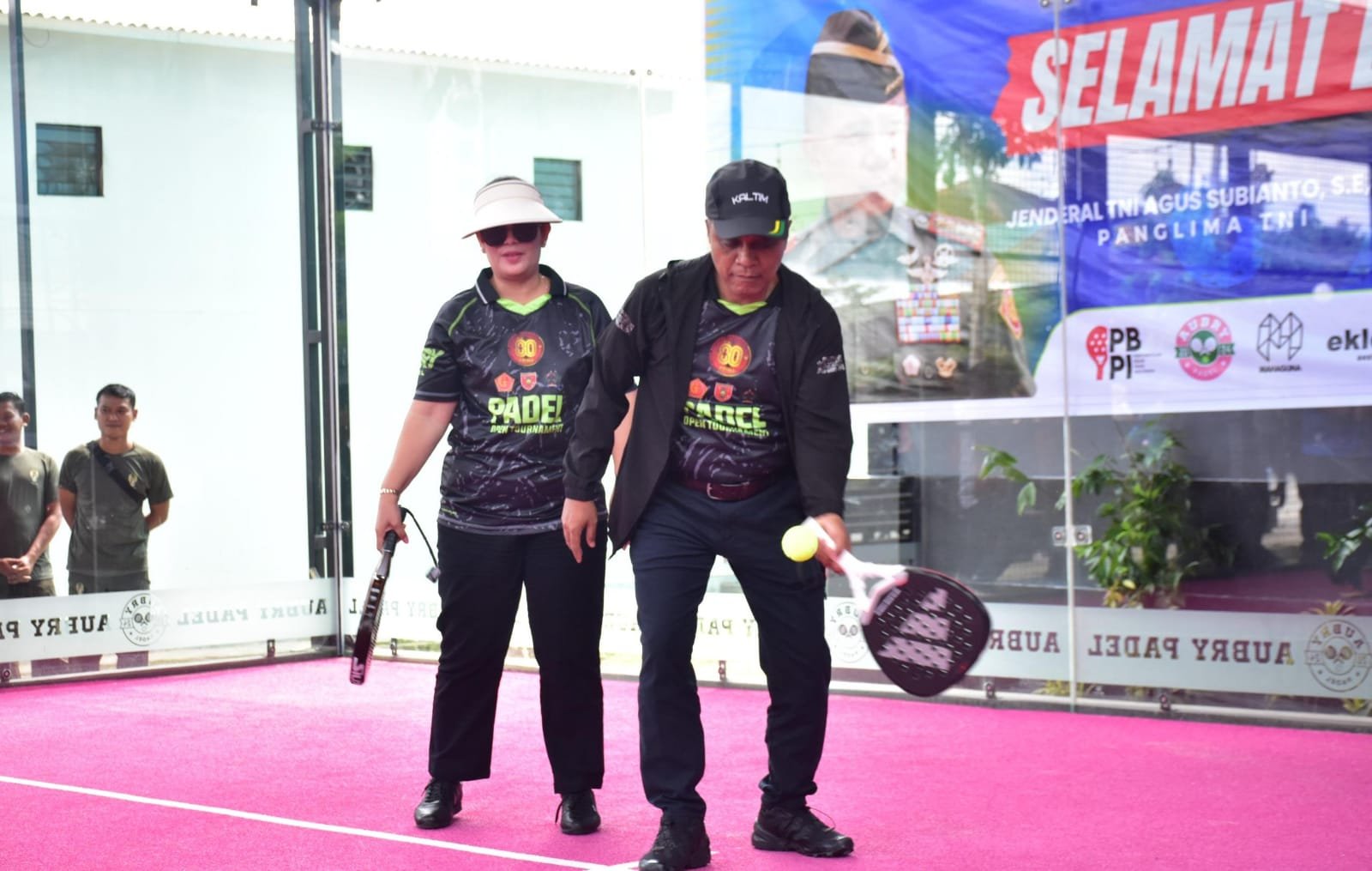 SAMARINDA: Open Tournament Padel Piala Panglima TNI, semarakkan peringatan HUT ke-80 TNI tahun 2025, dibuka Danrem 091/ASN Brigjen TNI Anggara Sitompul, di Gedung Olahraga Padel, Jalan Juanda 6 Samarinda, Jumat, 10 Oktober 2025.