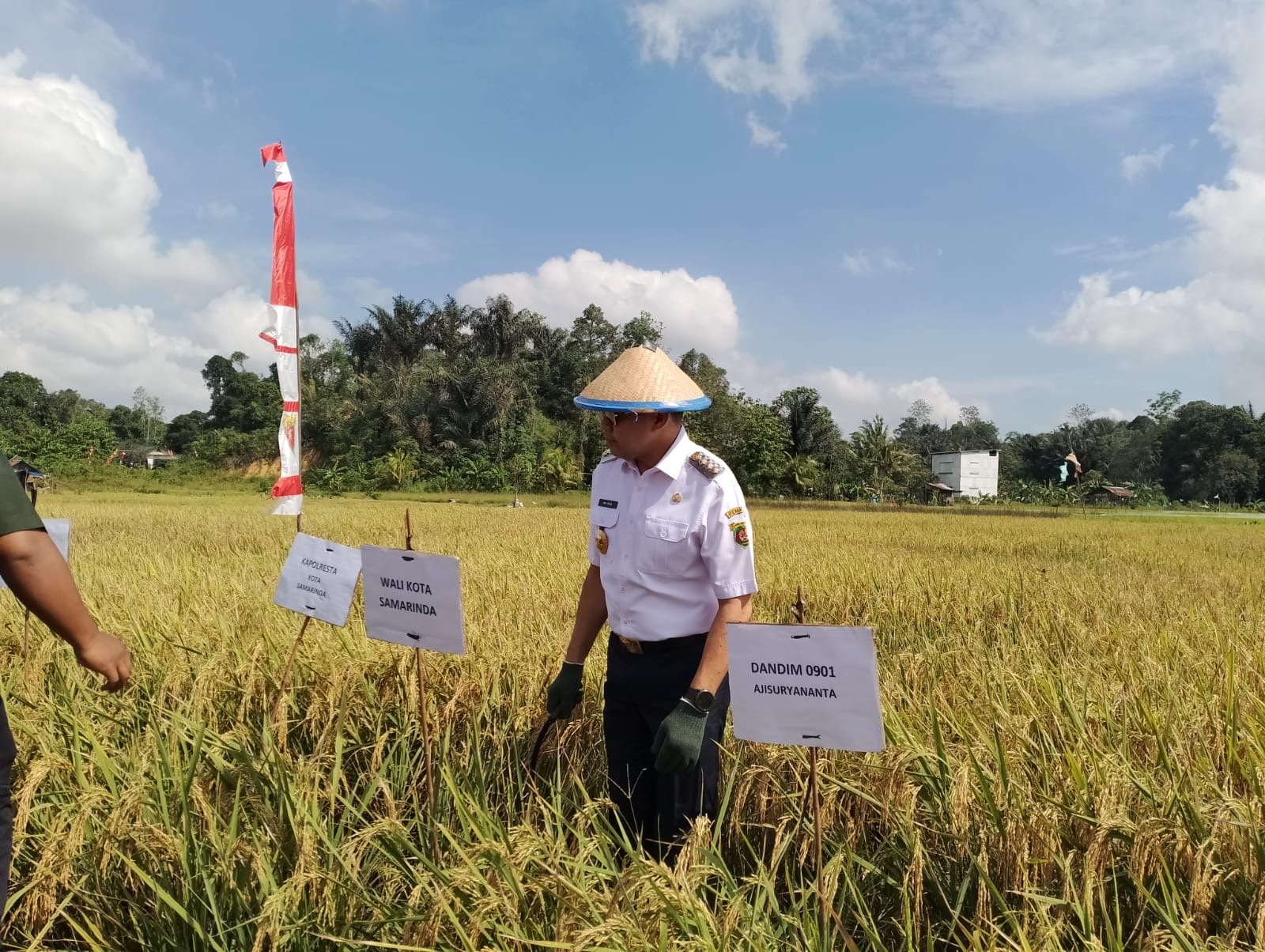 Andi Harun secara simbolis memanen padi sebagai pembuka prosesi panen bersama Kapolresta Samarinda Kombes Pol Ary Fadli, perwakilan Dinas Pangan Tanaman Pangan dan Holtikultura (DPTPH) Kaltim, perwakilan Kodim 0901 Samarinda, perwakilan Badan Pusat Statistik (BPS) Samarinda, dan Lurah Sambutan Tri Andarmo.
