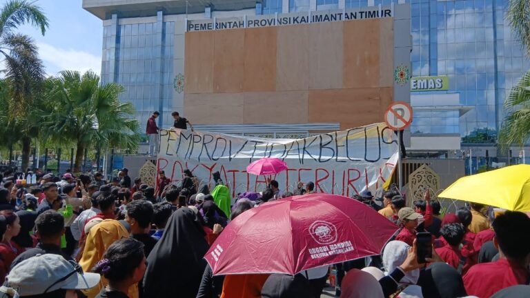 “Hari ini Pemprov Kaltim mencederai rakyatnya sendiri. Rumah jabatan sampai Rp25 miliar. Pak Gubernur, Pak Wakil Gubernur, kami kecewa. Pemprov tidak pro rakyat,” ujar salah satu orator.
