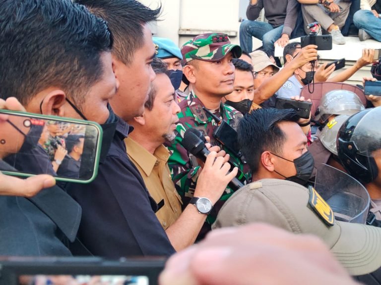 “Kepada adik-adik mahasiswa, harap sampaikan aspirasinya dengan santun, tanpa harus merusak fasilitas yang ada,” seru Ary Fadly, Kapolresta Samarinda yang terlihat di garda terdepan.