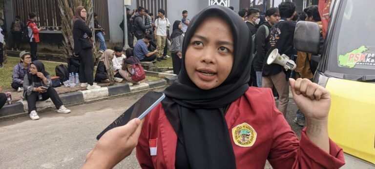 Ratusan mahasiswa yang menolak hal tersebut menggelar aksi di depan Kantor DPRD Kaltim, Kamis 6 Februari 2025.