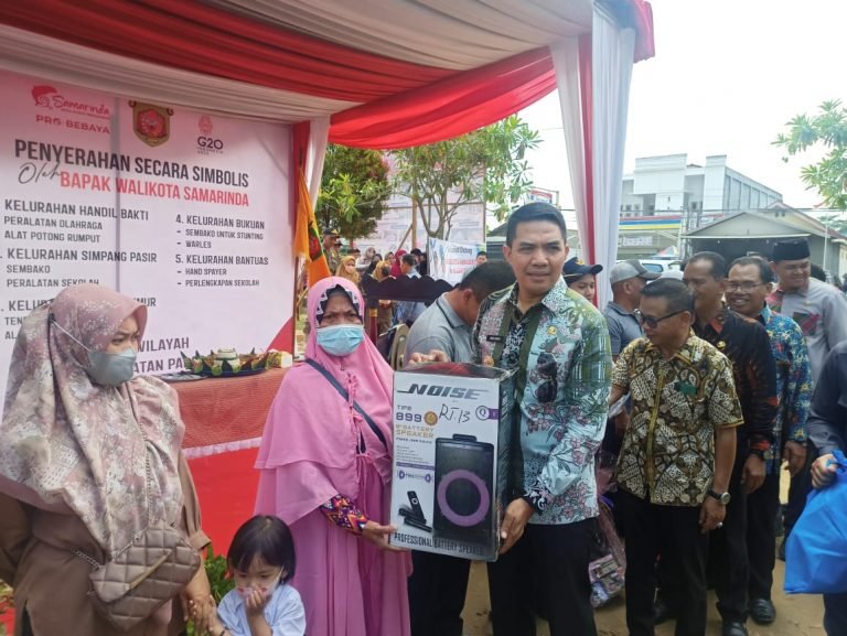 Samarinda – Wali Kota Samarinda, Andi Harun menyerahkan bantuan sosial kepada masyarakat Kecamatan Palaran pada kegiatan Gebyar Probebaya (program pembangunan dan pemberdayaan masyarakat) tahun 2022.