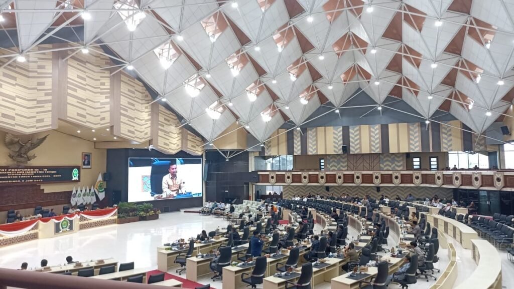 SAMARINDA: Anggota Komisi I DPRD Kalimantan Timur (Kaltim), Baharuddin Demmu, mengajukan interupsi dalam Rapat Paripurna ke-16 DPRD Kaltim yang digelar, Senin, 2 Juni 2025.
