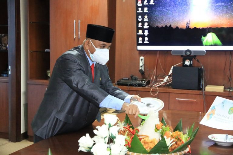 Usai pelantikan, Biro Adpim langsung menggelar syukuran perubahan nama dengan pembacaan doa dan pemotongan tumpeng.