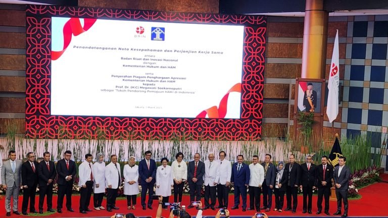 “Komitmen bersama ini akan memantapkan langkah Kolaboraksi (kolaborasi antara kementerian/ lembaga yang saling bersinergi) untuk menyatukan langkah bersama dalam mengelola dan memanfaatkan hasil riset dan inovasi nasional yang dihasilkan oleh BRIN untuk dapat memberikan dampak yang signifikan terhadap pertumbuhan ekonomi nasional, terutama potensi di bidang kekayaan intelektual (KI),” ujar Menteri Hukum dan HAM (Menkumham), Yasonna H. Laoly, pada acara penandatanganan nota kesepahaman antara Kemenkumham dan BRIN pada Rabu, (1/3/2023 di Kantor BRIN, Jakarta Pusat.