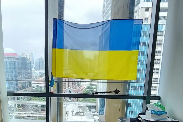 Jakarta-Seorang staf di Kedutaan Besar Republik Ukraina di Jakarta, mempersilakan saya masuk ke ruangannya yang berada persis di sebelah ruangan kerja Dubes Ukraina Vasyl Hamianin,Senin(28/2/2022)