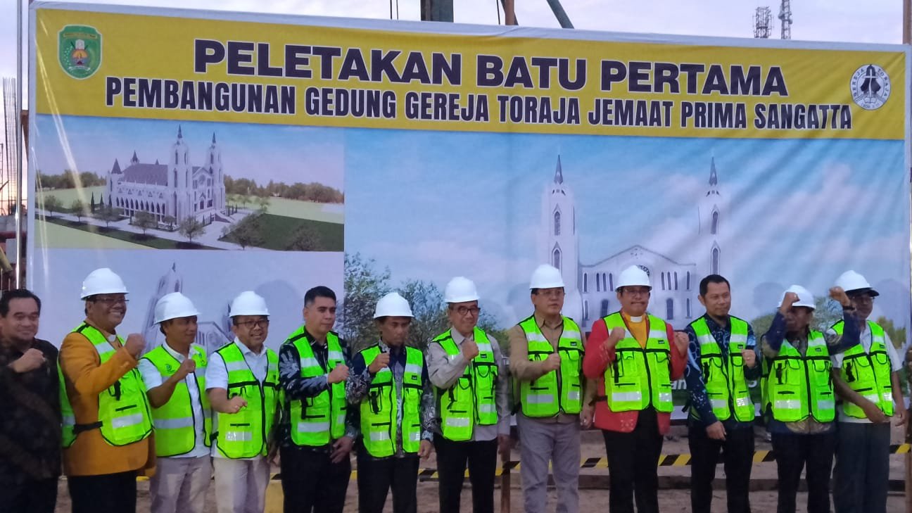 KUTIM: Bupati Kutai Timur (Kutim), Ardiansyah Sulaiman, memimpin peletakan batu pertama pembangunan Gereja Toraja Jemaat Prima Sangatta pada Rabu, 13 November 2025.