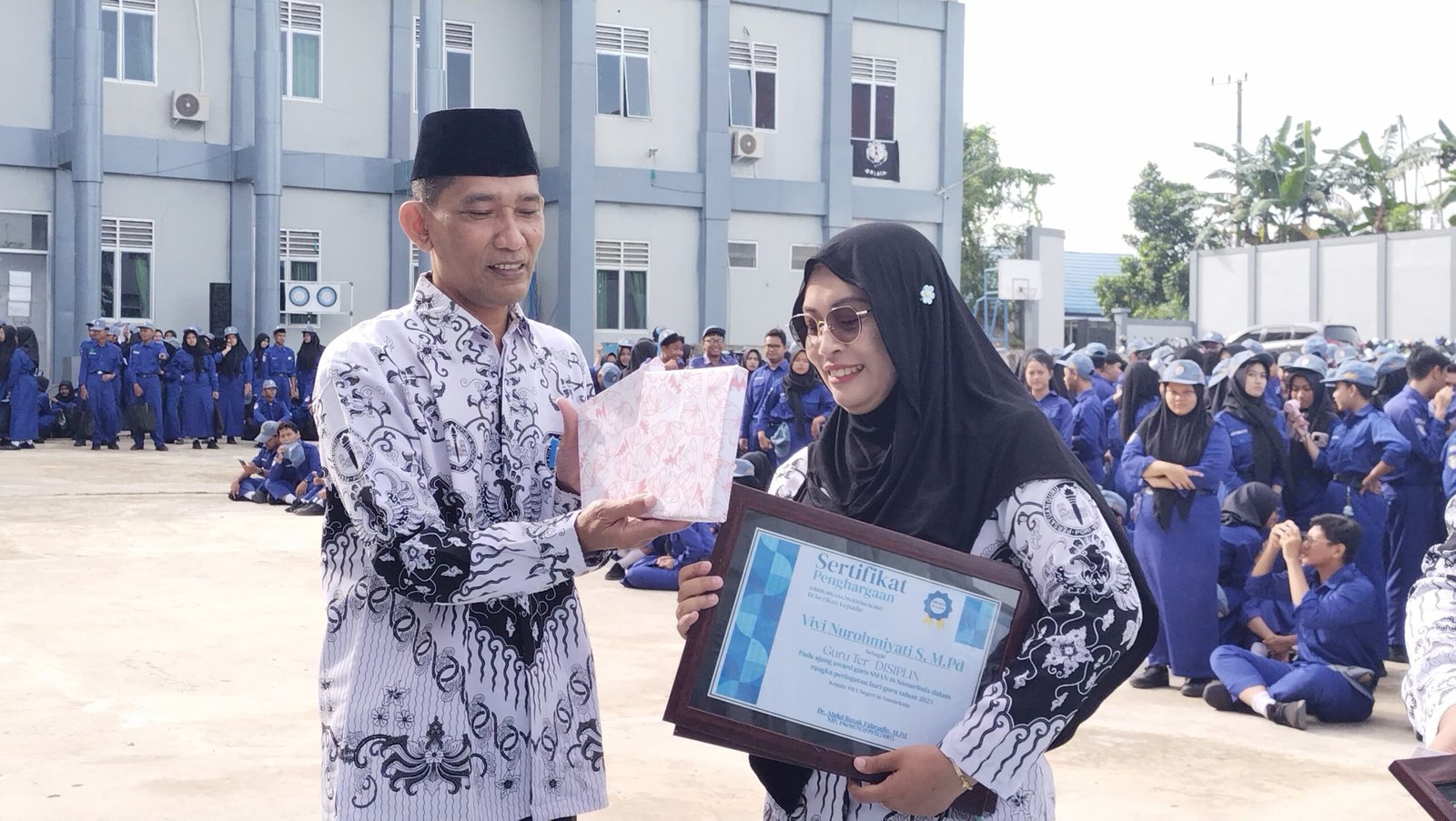 Tidak hanya menggelar upacara bendera, sekolah ini juga memberikan penghargaan kepada para guru berdasarkan penilaian langsung dari siswa.
