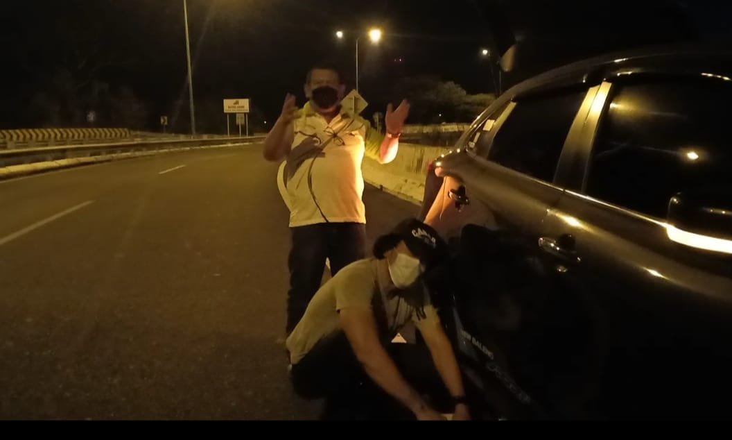 “Baru dua kali mobil ini bocor dan ini pas di tol. Bawa Pak Inton lagi. Maaf ya Pak Inton,” canda Bambang Janu, sambil memutar baut ban. Mereka pun menghapus panik dengan canda tawa sambil memasang ban cadangan.