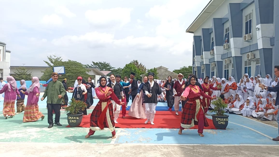 Sementara itu, siswa-siswi SMAN 16 membalas sambutan dengan menampilkan Tari Jepen, tarian khas Kalimantan Timur.