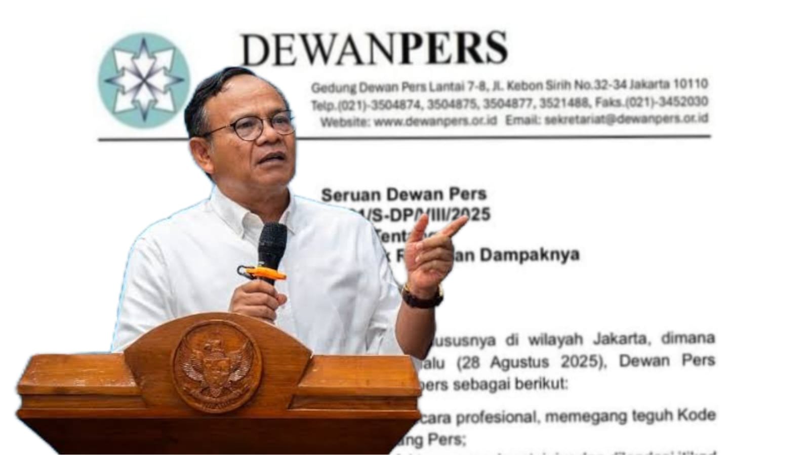 Instruksi ini tertuang dalam surat bernomor 01/S-DP/VIII/2025 tentang Pemberitaan Unjuk Rasa dan Dampaknya, ditandatangani Ketua Dewan Pers, Prof. Dr. Komaruddin Hidayat, pada Jumat, 29 Agustus 2025.