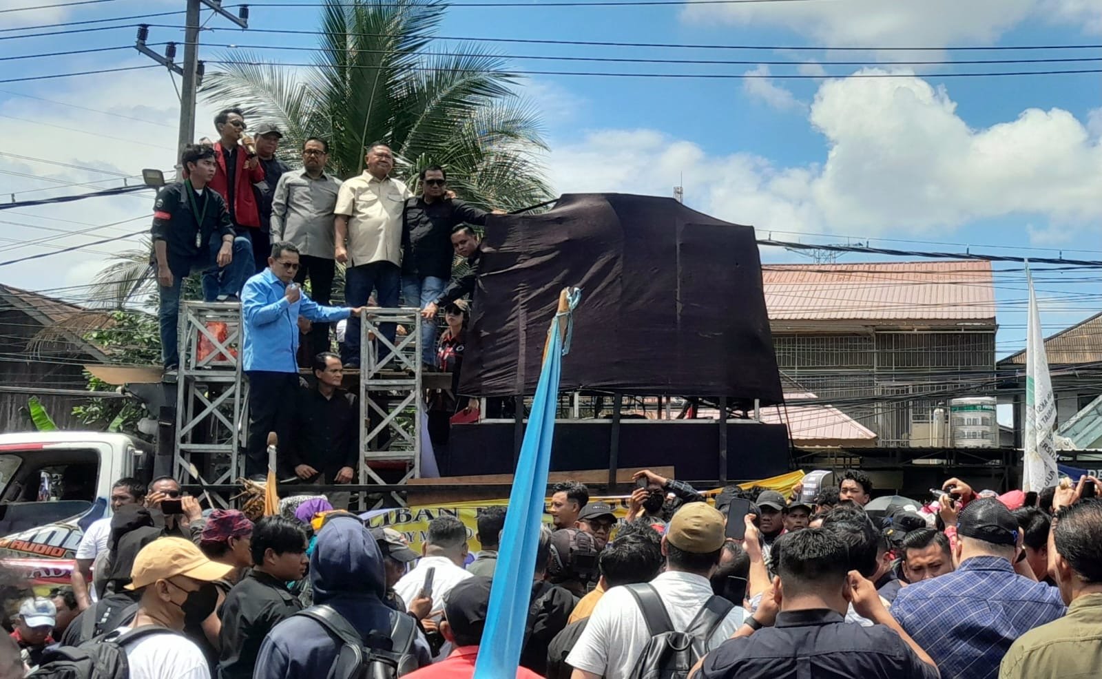 Penandatanganan pakta integritas ini pun dilakukan di hadapan massa sebagai simbol komitmen politik dan moral.