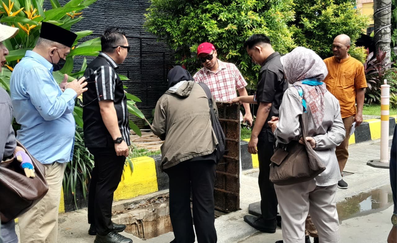 Didampingi perwakilan DLH, Basuni dan Hendra, rombongan memeriksa langsung alat penyaring lemak (grease trap) serta saluran pembuangan akhir sebelum dialirkan ke drainase kota di Jalan Jenderal Sutopo.