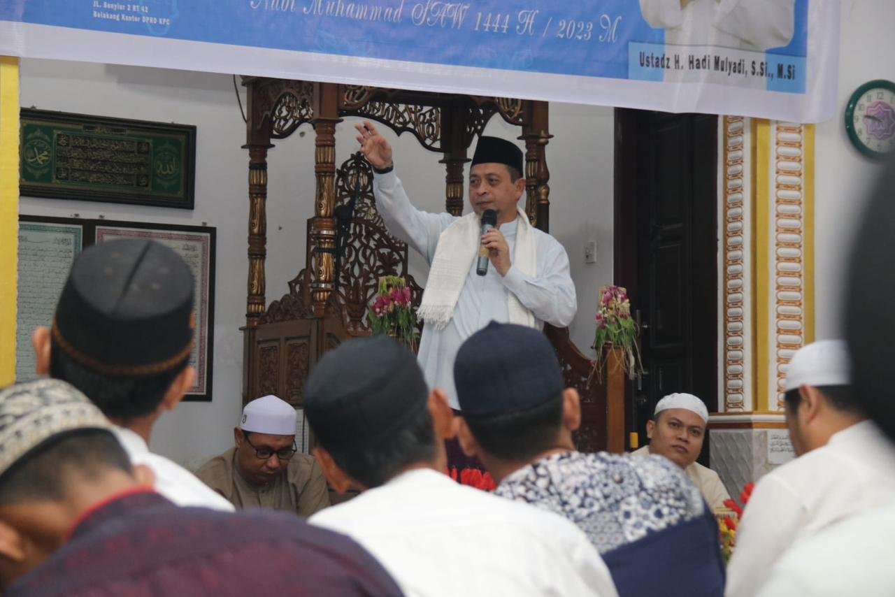Ajakan ini disampaikan Hadi Mulyadi, pada peringatan Isra Mikraj Nabi Muhammad SAW 1444 Hijriah di Masjid Asy-Syuhada Jalan Senyiur 2 RT 42 Kelurahan Lok Bahu, Kecamatan Sungai Kunjang, Samarinda, Senin (13/2/2023), saat didaulat menjadi penceramah dalam peringatan Isra Mikraj .
