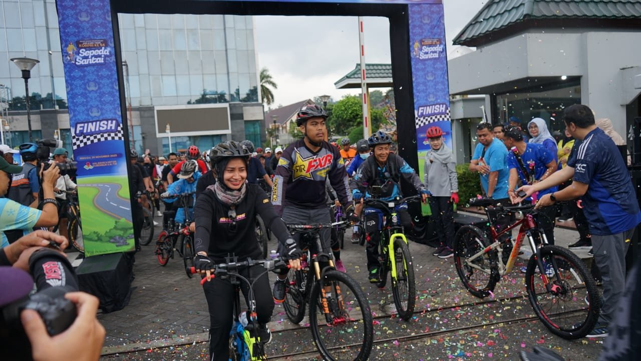 SAMARINDA: Hujan yang mengguyur Samarinda sejak pagi tidak menyurutkan antusias ratusan peserta untuk mengikuti Sepeda Santai HUT KORPRI ke-54 yang digelar Pemerintah Provinsi Kalimantan Timur pada Minggu, 30 November 2025.