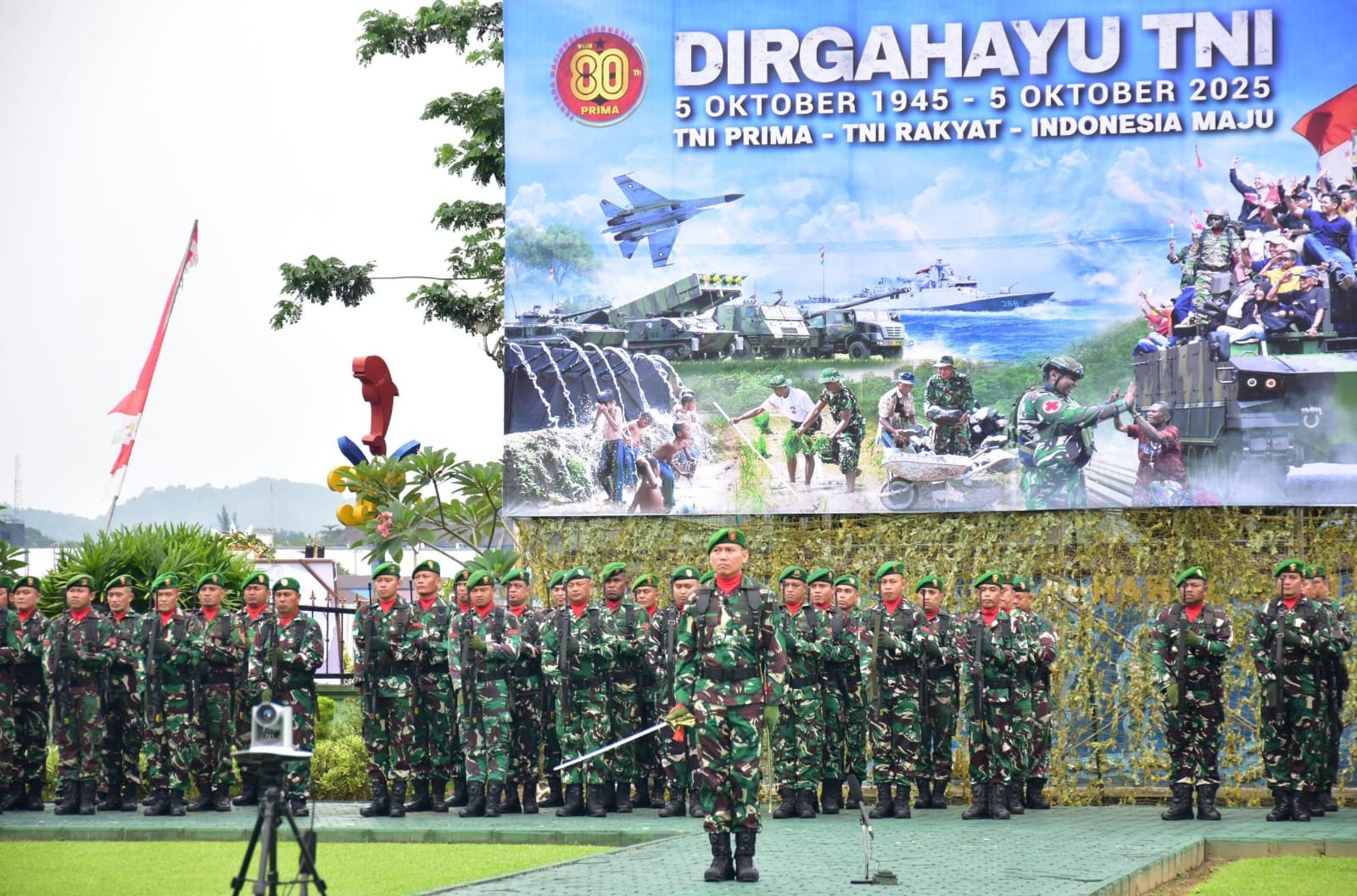 Suasana upacara berjalan khidmat, menegaskan komitmen TNI sebagai benteng negara sekaligus perekat bangsa bersama rakyat.
