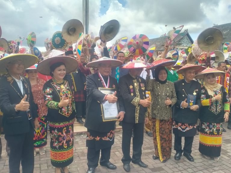 Peringatan yang diselenggarakan di Taman Budaya Sendawar, pada Sabtu (5/11/2022) menjadi perhatian masyarakat dengan mencetak rekor yang dicatatkan pada Museum Rekor Indonesia (Muri) karena tercatat sebanyak 11.553 peserta apel menggunakan Seraung atau topi daun bersulam manic khas Suku Dayak.