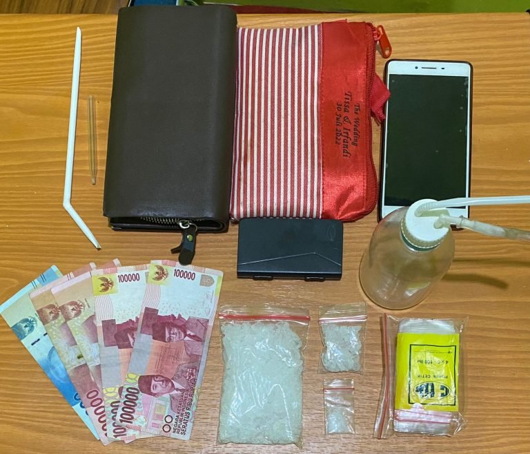 Sementara itu barang bukti lain, polisi menemukan handphone, dua buah dompet, sedotan runcing, plastik klip, pipet kaca, timbangan digital, dan uang tunai Rp 450 ribu hasil penjualan.