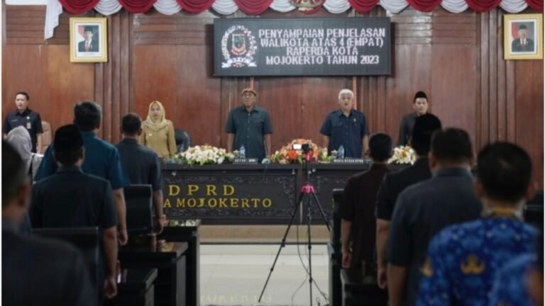 MOJOKERTO : Wali Kota Mojokerto, Ika Puspitasari, menjelaskan empat Rancangan Peraturan Daerah (Raperda) Kota Mojokerto tahun 2023 dalam rapat Paripurna di Ruang Rapat DPRD Kota Mojokerto, Senin (17/7/2023).