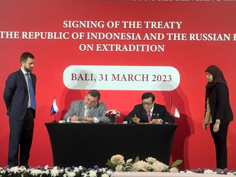 Komitmen itu dibuktikan melalui penandatanganan oleh Menkumham Yasonna bersama Menteri Hukum Federasi Rusia Konstantin Chuichenko berupa perjanjian ekstradisi antara Republik Indonesia (RI) dengan Federasi Rusia di Bali, Jumat (31/3/2023).