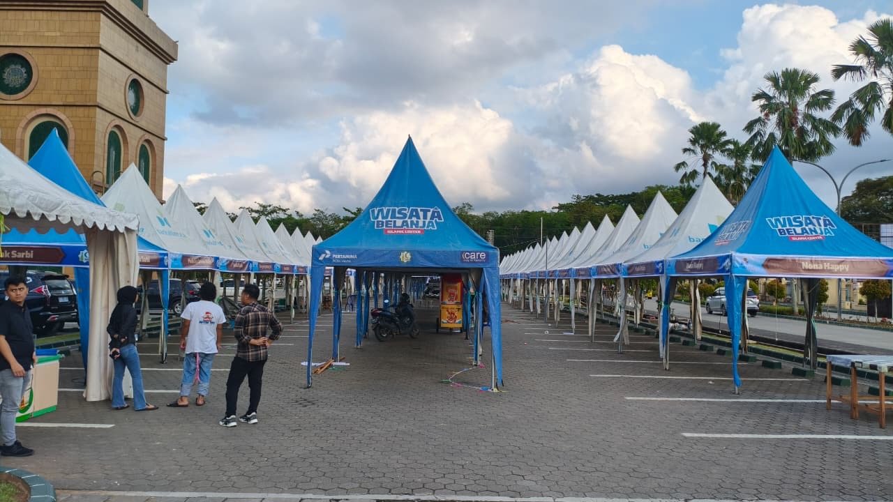 Dari pantauan Narasi.co H-1 pembukaan bazar di halaman masjid, sebanyak 60 tenant UMKM lokal telah terpasang dan siap meramaikan area yang dikemas dalam konsep “Route Kuliner Enak Festival Ramadan 1447 H”.