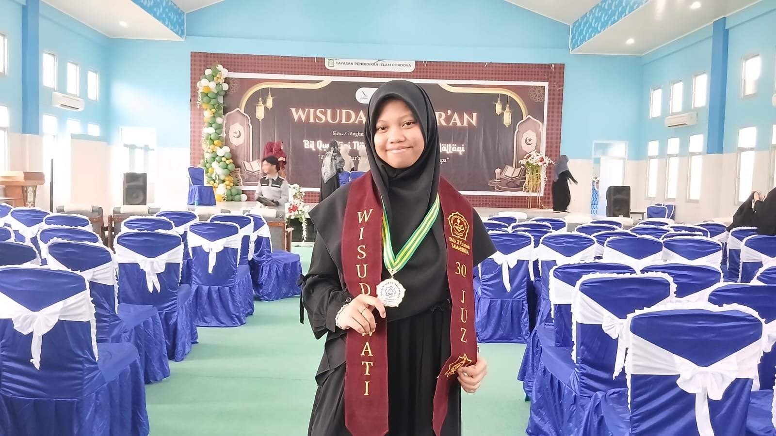 Di sekolah inilah ia akhirnya berhasil menuntaskan hafalan 30 juz Al-Qur’an dan menjadi satu dari dua siswa dari total 111 peserta yang berhasil menyelesaikan hafalan penuh dalam wisuda tersebut.