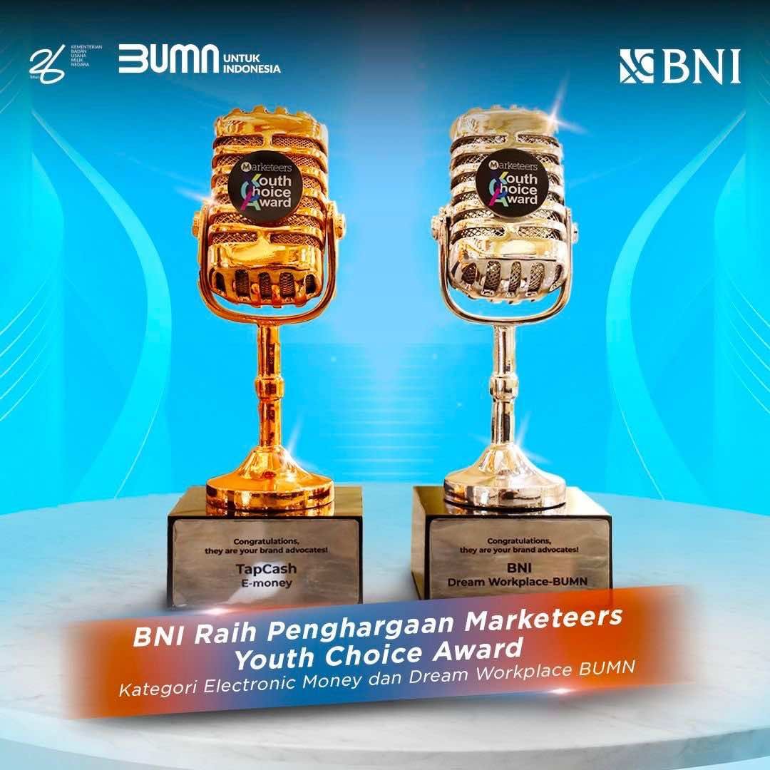 JAKARTA: Dengan komitmen kinerja yang konsisten, BNI kembali menorehkan prestasi, dengan meraih dua penghargaan bergengsi di ajang “Marketeers Youth Choice Award (YCA) 2024”.