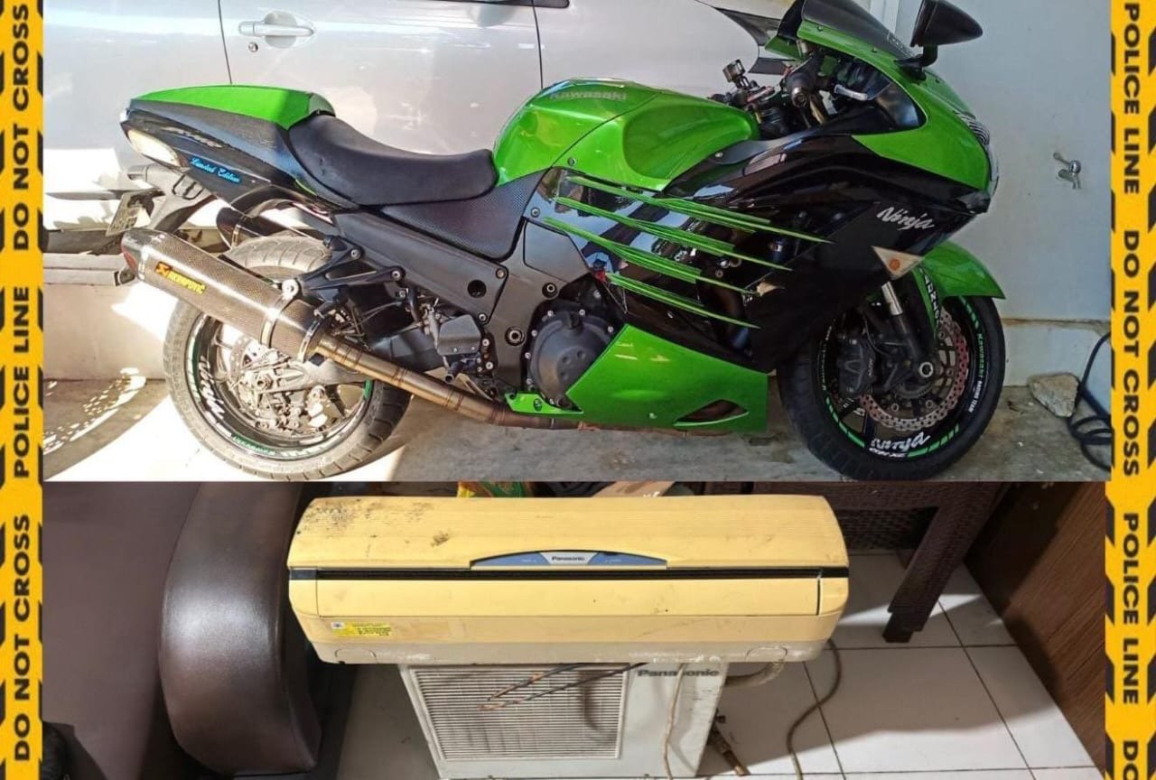 Dari tangan tersangka, polisi turut mengamankan seluruh barang bukti hasil pencurian, yakni sepeda motor Kawasaki Ninja ZX-14R dengan nomor polisi B-3876-TRA serta satu unit AC Panasonic 1 PK. Seluruh barang bukti kini diamankan di Polsek Samarinda Ulu.
