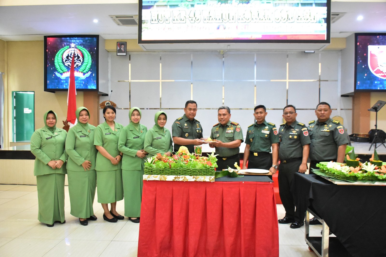 Puncak perayaan ditandai dengan pemotongan tumpeng oleh Kasrem 091/ASN didampingi Wakil Ketua Persit Kartika Chandra Kirana Koorcab Rem 091 PD VI/Mulawarman.