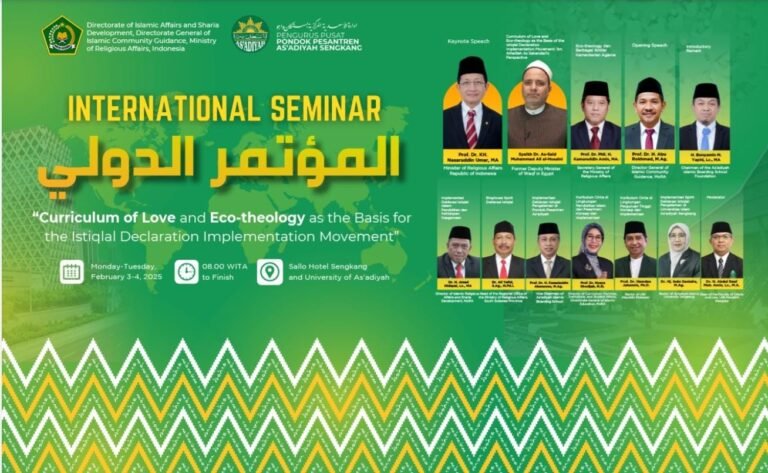 Ditambahkan, dua konsep ini dibahas bersama dalam seminar internasional bertajuk “Kurikulum Cinta dan Eco-Theology sebagai Basis Gerakan Implementasi Deklarasi Jakarta” di Sengkang, Wajo, Sulawesi Selatan. Giat ini diselenggarakan Kemenag bekerja sama dengan Pesantren As’adiyah, Sengkang.