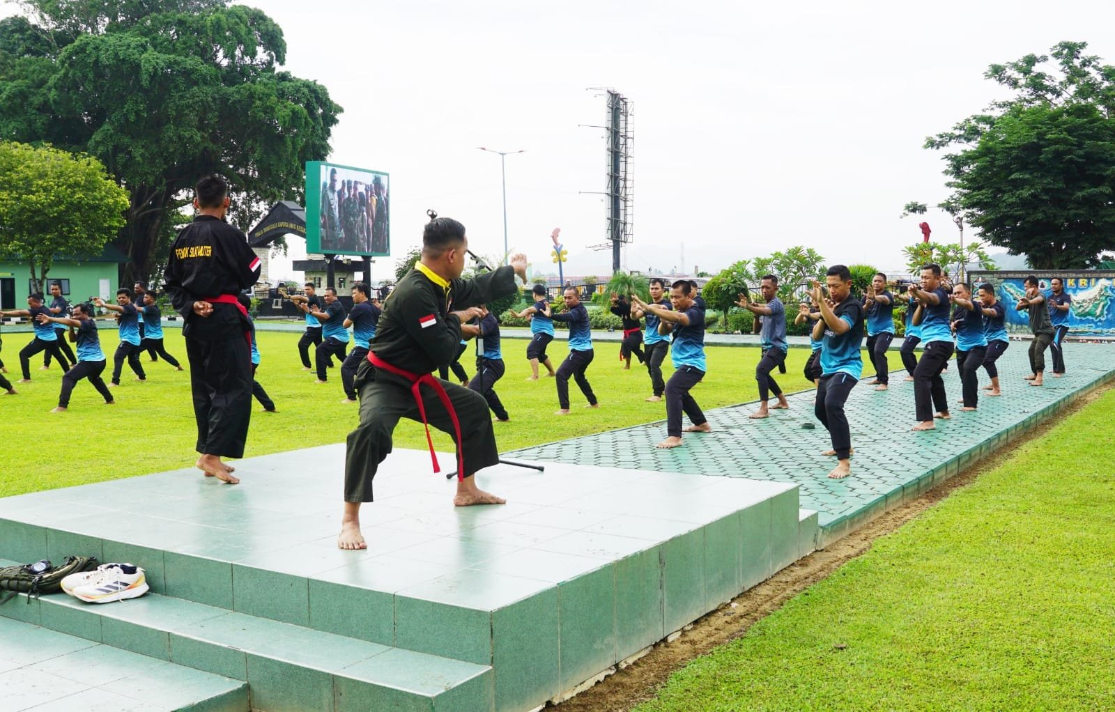 Latihan berlangsung tertib dan antusias, mencerminkan semangat prajurit dalam mempertahankan disiplin serta kemampuan bela diri sebagai bagian dari identitas dan kehormatan TNI AD.