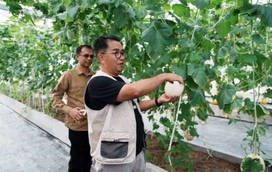 BALIKPAPAN : Penjabat (Pj) Gubernur Kalimantan Timur (Kaltim) Akmal Malik mengaku buah melon hasil pengelolaan greenhouse memiliki rasa yang berbeda dari melon biasanya.