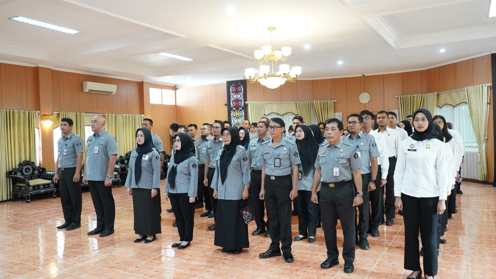 Apel tersebut dilaksanakan secara daring dan diikuti dari Aula Kanwil Kemenkum Kaltim.
