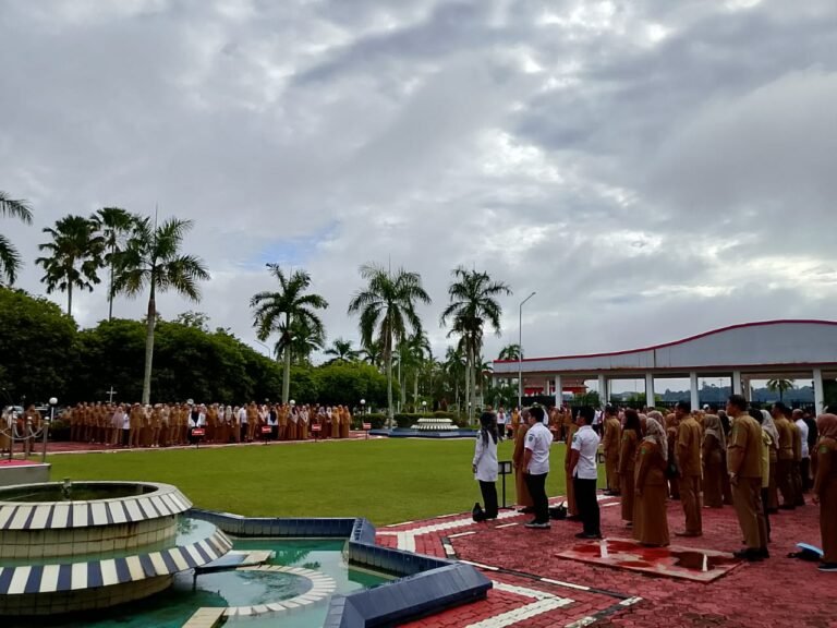 KUKAR : Seluruh Aparatur Sipil Negara (ASN) dan tenaga non-ASN di lingkungan Sekretariat Daerah (Setda) Kabupaten Kutai Kartanegara (Kukar) mengikuti apel pagi dan kegiatan halalbihalal di halaman Kantor Bupati Kukar, Senin, 14 April 2025.