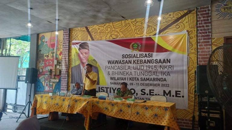 Kegiatan tersebut menghadirkan pemateri dari Kepala Bidang Ideologi Wawasan Kebangsaan dan Karakter Bangsa, Badan Kesatuan Bangsa dan Politik (Kesbangpol) Kaltim, Fatimah Waty, Janri Benyamin Pasiter Kodim 0901 Kota Samarinda.