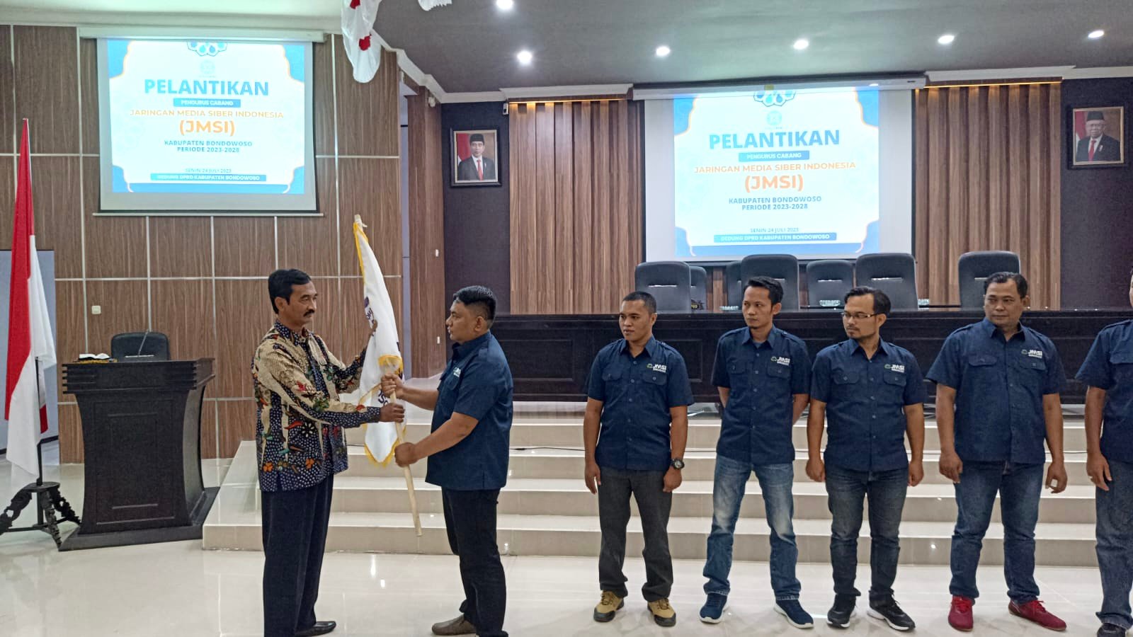 BONDOWOSO : Sejarah baru ditorehkan oleh Pengurus Cabang Jaringan Media Siber Indonesia (JMSI) Kabupaten Bondowoso saat dilantik di Gedung DPRD pada Senin Siang (24/7/2023).