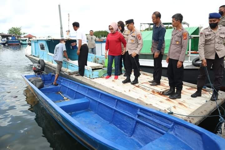 Bantuan sosial tersebut berupa 1 unit kapal ketinting dan puluhan paket bingkisan sembako.