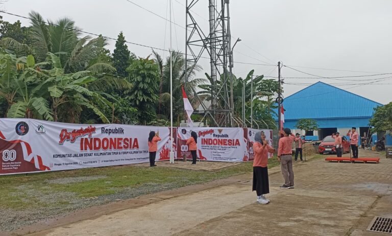 SAMARINDA: Memperingati hari ulang tahun (HUT) Republik Indonesia ke-80, Komunitas Jalan Sehat (KJS) Kalimantan Timur bersama Forum Kalimantan Timur Sehat (FOKUS) melaksanakan upacara pengibaran bendera Merah Putih.