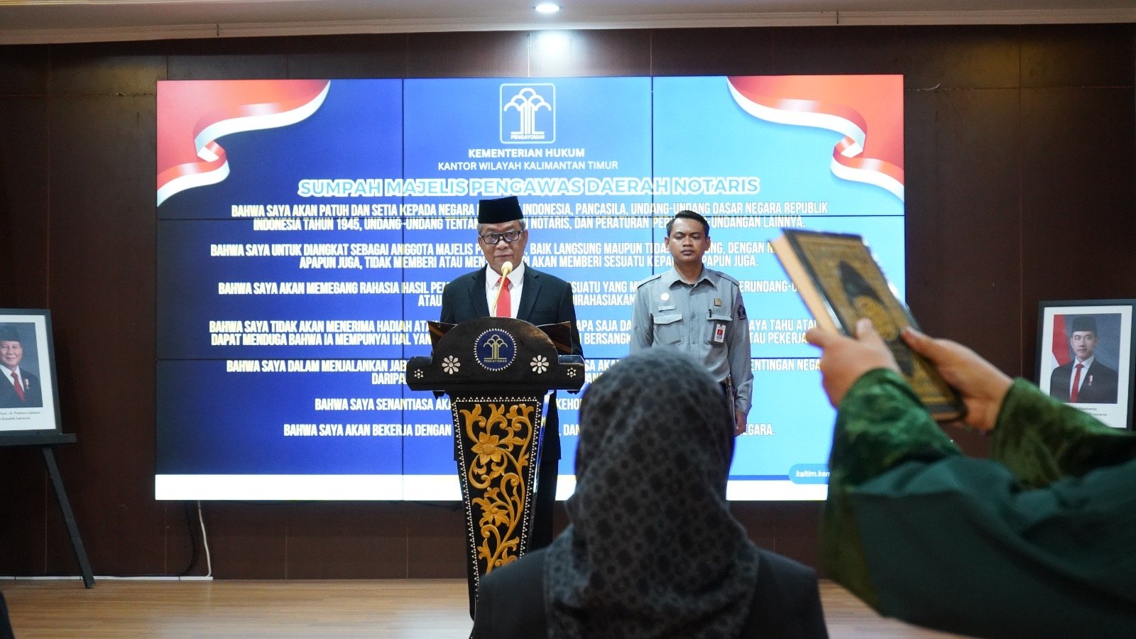 Kepala Kantor Wilayah (Kakanwil) Kemenkum Kaltim, Muhammad Ikmal Idrus menegaskan pelantikan ini bukan sekadar agenda seremonial, tetapi momentum strategis untuk memperkuat tata kelola pelayanan hukum, khususnya dalam bidang kenotariatan.