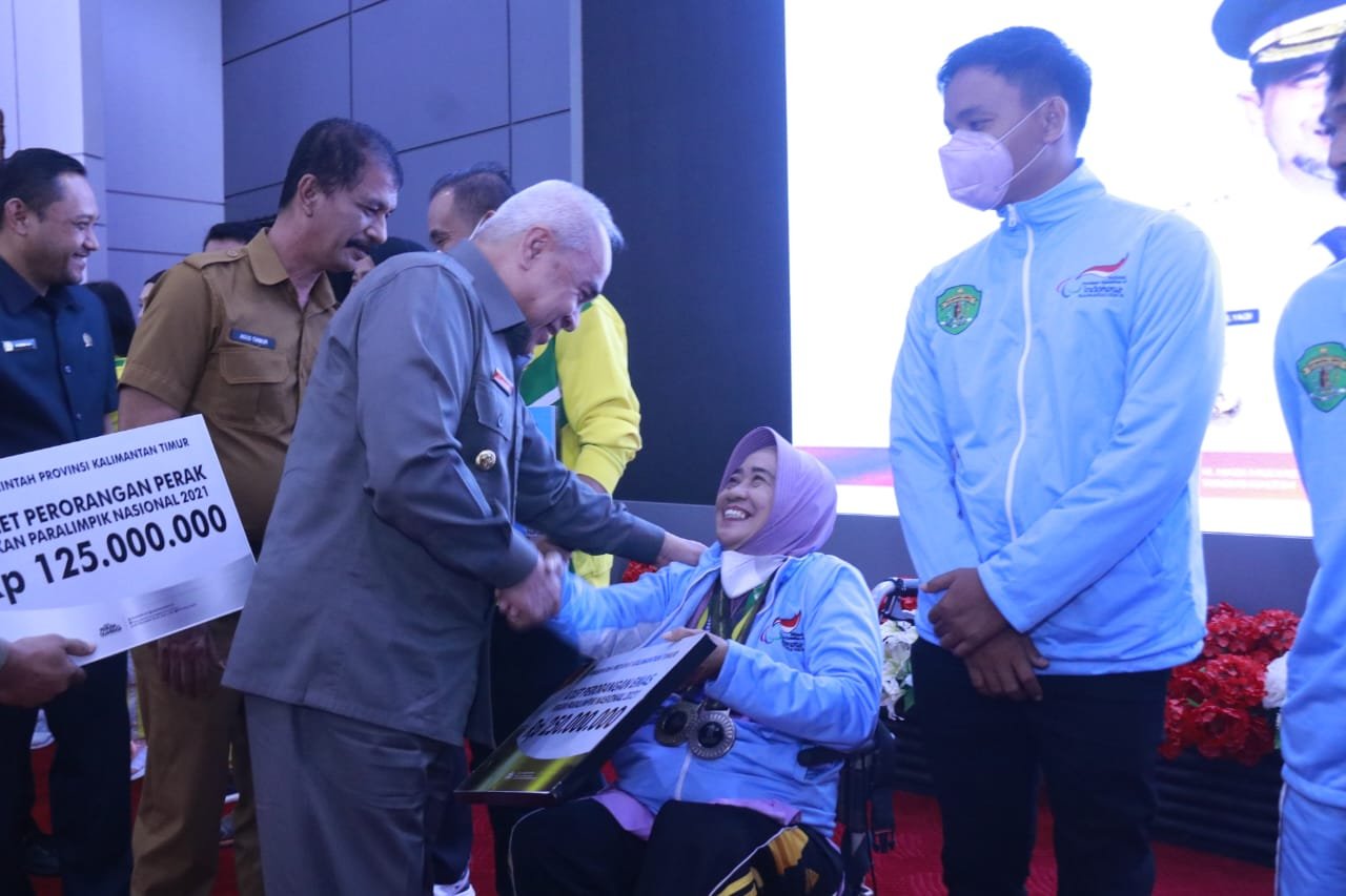 Samarinda – Pemerintah Provinsi Kalimantan Timur (Pemprov Kaltim) menepati janjinya memberikan bonus kepada para atlet Kaltim yang sukses berprestasi pada ajang Pekan Olah Raga Nasional (PON) XX Papua dan Pekan Paralimpik Nasional (Perpanas) XVI juga di Papua.