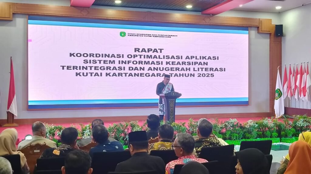 KUKAR: Upaya memperkuat tata kelola pemerintahan berbasis elektronik terus digencarkan Pemerintah Kabupaten Kutai Kartanegara. Bupati Kukar, Aulia Rahman Basri, secara resmi membuka Rapat Koordinasi (Rakor) Optimalisasi Aplikasi Sistem Informasi Kearsipan Terintegrasi (Srikandi) di Pendopo Odah Etam, Tenggarong, Kamis, 16 Oktober 2025.