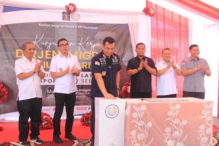 NUNUKAN: Dirjen Imigrasi Kemenkumham Silmy Karim melanjutkan rangkaian kunjungan kerjanya dengan meresmikan Unit Layanan Paspor di Kecamatan Sebatik Nunukan Kalimantan Utara, Rabu (15/5/2024).
