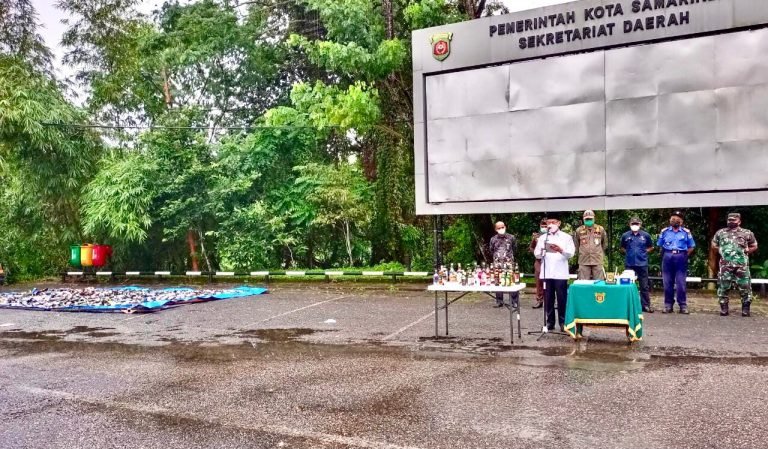 Ribuan botol itu merupakan hasil razia Satuan Polisi Pamong Praja (Satpol PP) Kota Samarinda sejak Agustus 2021. Pemusnahan yang dilakukan di Balai Kota Samarinda pada Kamis (16/12/2021) disaksikan langsung oleh Wakil Wali Kota Samarinda Rusmadi Wongso beserta jajarannya.