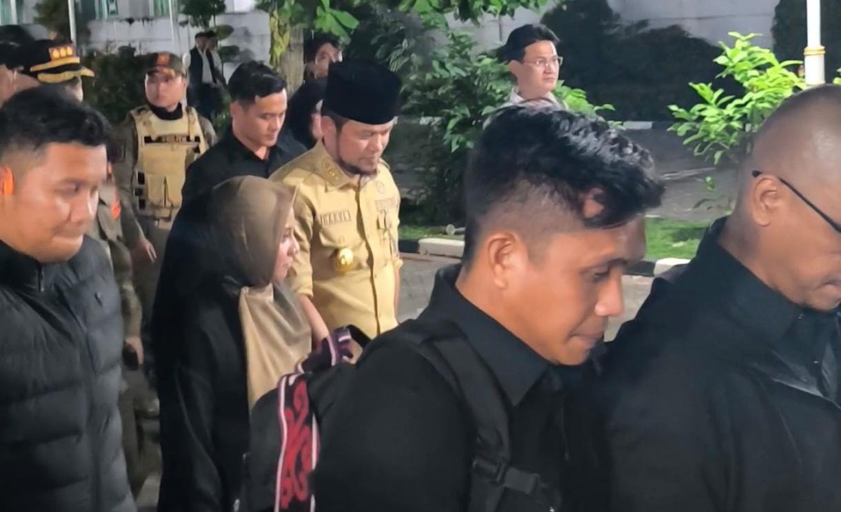 SAMARINDA: Gubernur Kalimantan Timur, Rudy Mas’ud, akhirnya terlihat keluar dari Kantor Gubernur, sekitar pukul 20.00 WITA setelah aksi demonstrasi yang berlangsung sepanjang hari, Selasa, 21 April 2026.