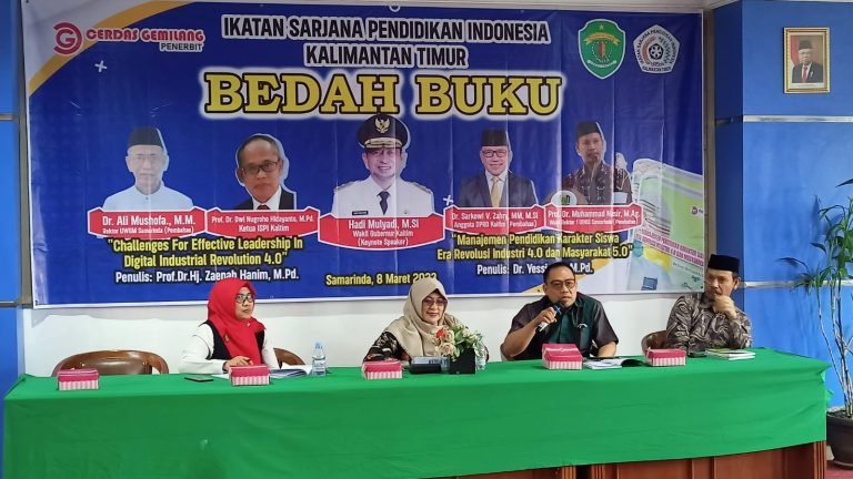 SAMARINDA : Anggota DPRD Provinsi Kalimantan Timur Sarkowi V. Zahry menghadiri kegiatan bedah buku berjudul “Manajemen Pendidikan Karakter Siswa Era Revolusi Industri 4.0 dan Masyarakat 5.0” karya Yessi dan “Challenges For Effective Leadership in Digital Industrial Revolution 4.0” karya Zaenab Hanim.