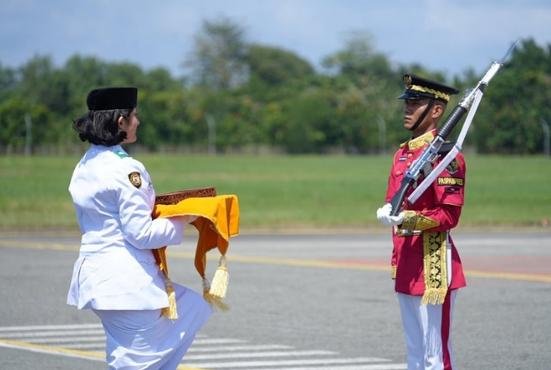 BALIKPAPAN : Usai sukses berkibar di Ibu Kota Nusantara (IKN), duplikat Bendera Pusaka Merah Putih akhirnya dibawa kembali ke Istana Negara di Jakarta melalui prosesi kirab.