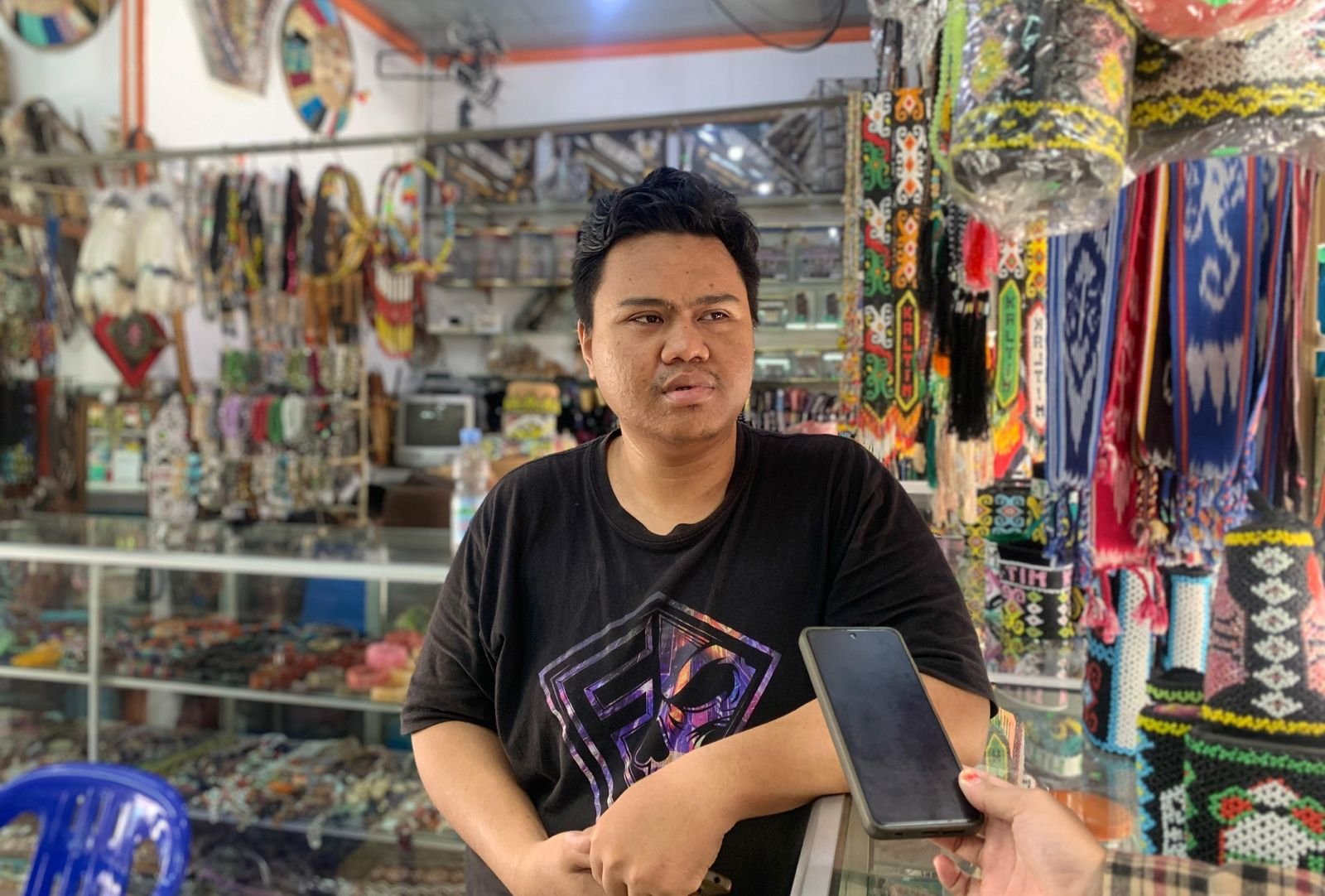 “Kalau orang luar biasanya yang dicari itu kaos, tas manik, mandau, patung, sama miniatur yang unik-unik,” ujarnya, Kamis, 15 Januari 2026.