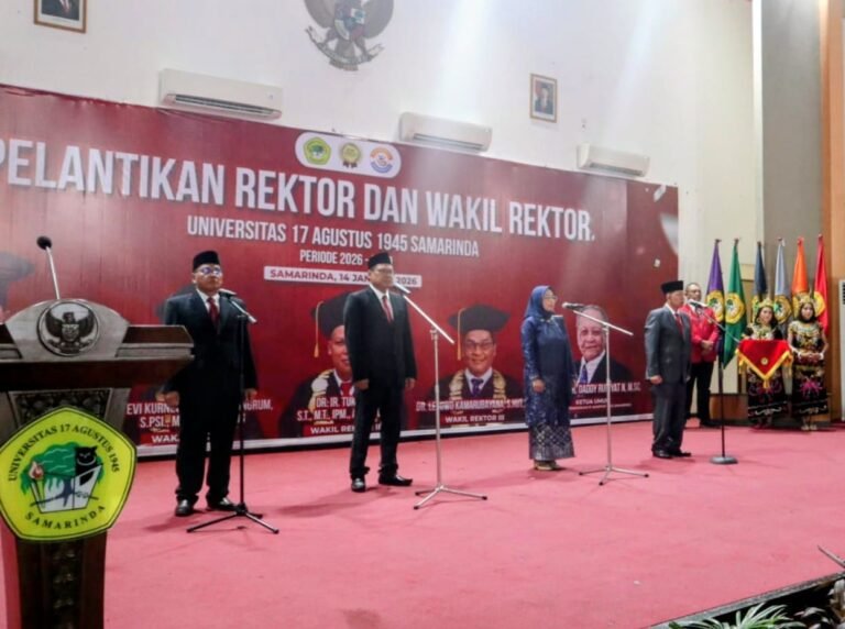SAMARINDA: Universitas 17 Agustus 1945 (Untag) Samarinda resmi memasuki babak baru kepemimpinan setelah melantik rektor dan jajaran wakil rektor untuk periode 2026-2039. Pelantikan ini sekaligus menandai penguatan arah pengembangan kampus menuju konsep entrepreneurial university yang lebih adaptif terhadap kebutuhan ekonomi dan dunia usaha.