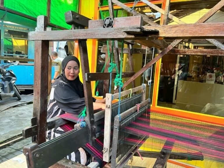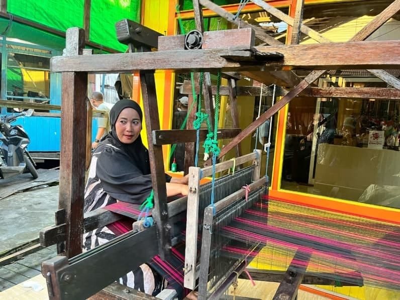 SAMARINDA: Kampung Wisata Tenun Samarinda, yang terletak di Jalan Panglima Bendahara, kawasan Samarinda Seberang, menawarkan pengalaman unik bagi pengunjung yang ingin melihat langsung proses pembuatan sarung tenun khas Kota Tepian.